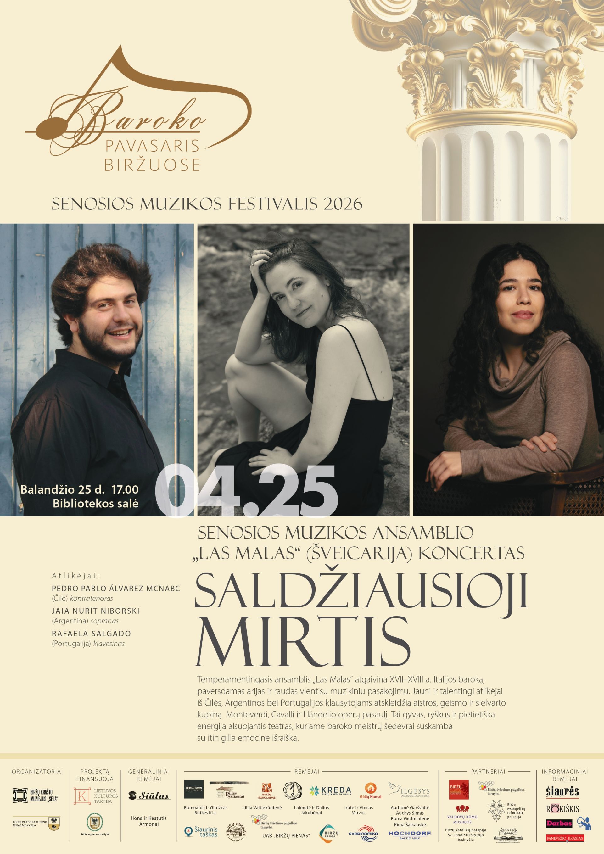 Temperamentingasis ansamblis „Las Malas“ atgaivina XVII–XVIII a. Italijos baroką, paversdamas arijas ir raudas vientisu muzikiniu pasakojimu. Jauni ir talentingi atlikėjai iš Čilės, Argentinos bei Portugalijos klausytojams atskleidžia aistros, geismo ir sielvarto kupiną Monteverdi, Cavalli ir Händelio operų pasaulį. Tai gyvas, ryškus ir pietietiška energija alsuojantis teatras, kuriame baroko meistrų šedevrai suskamba su itin gilia emocine išraiška.