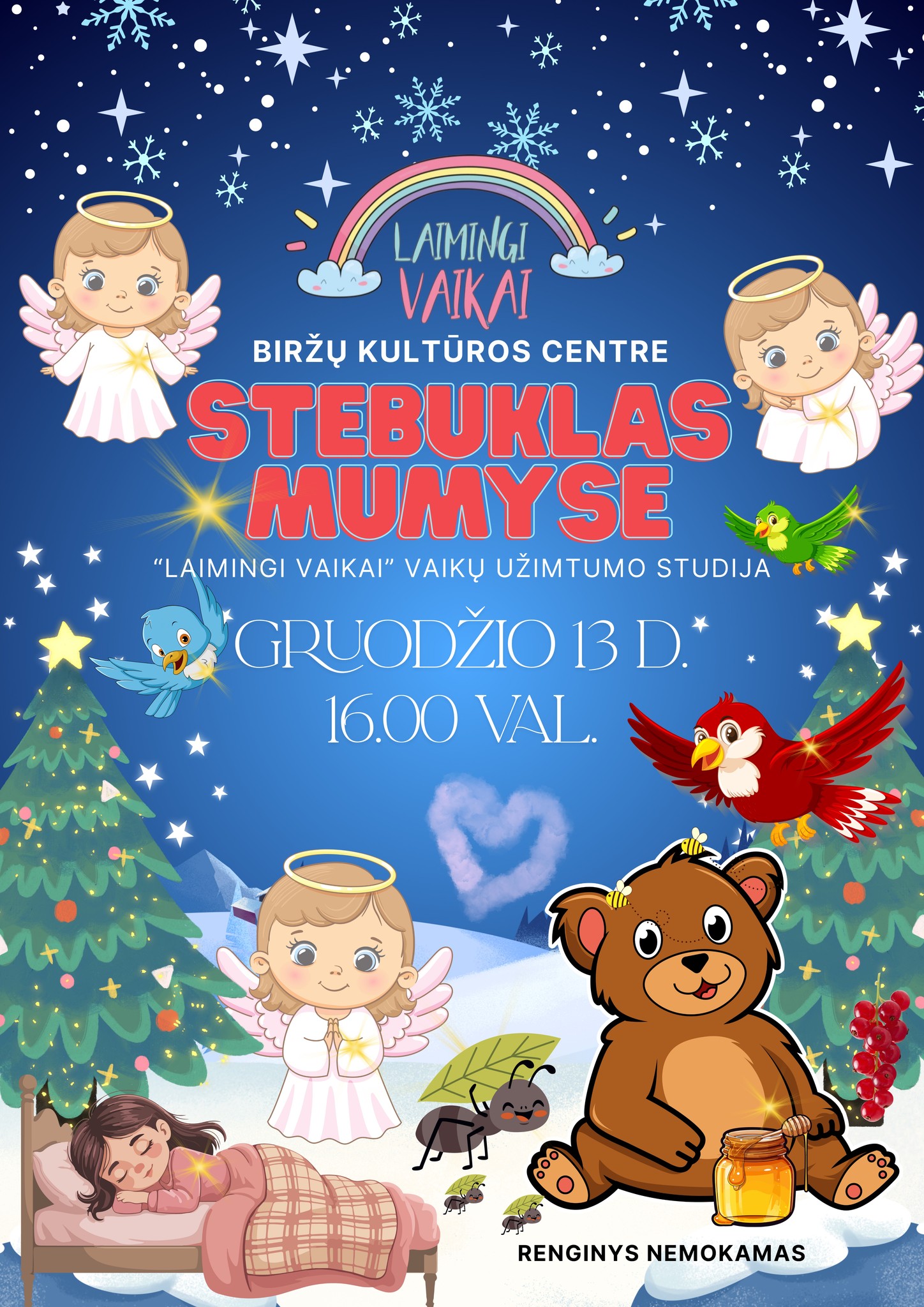 Scenoje išvysite angelus, mažylius paukštelius, skruzdėlytes ir meškučius – kiekvienas jų primins, kad stebuklas gimsta ten, kur yra meilė, draugystė ir dėkingumas.