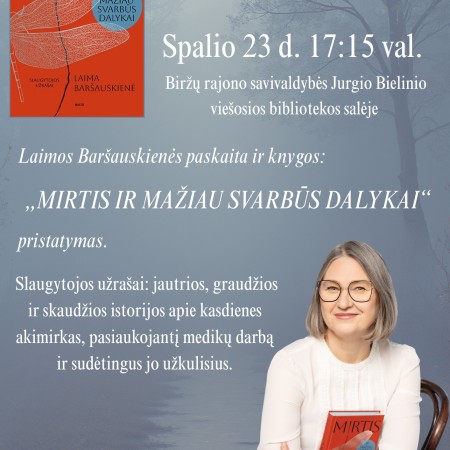 Spalio 23 d. 17:15 val. Biržų Jurgio Bielinio viešosios bibliotekos salėje.