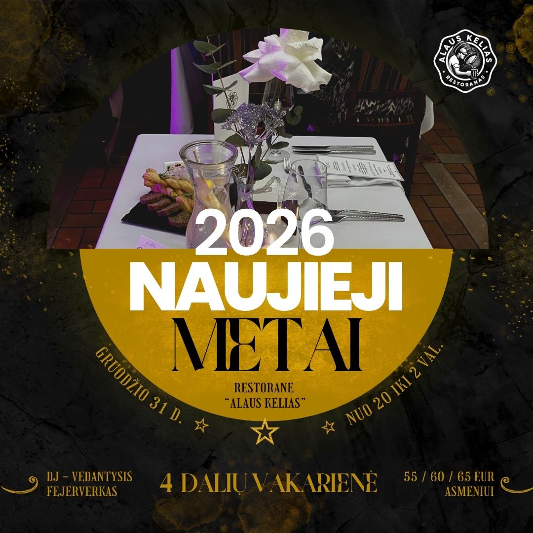 Kviečiame sutikti Naujuosius metus restorane „Alaus kelias“ Jūsų lauks keturių dalių vakarienė, pasitikimo gėrimas, DJ-vedantysis, šventinis fejerverkas ir putojančio taurė pasitinkant 2026-uosius metus