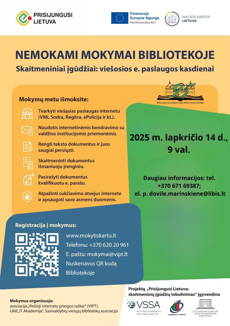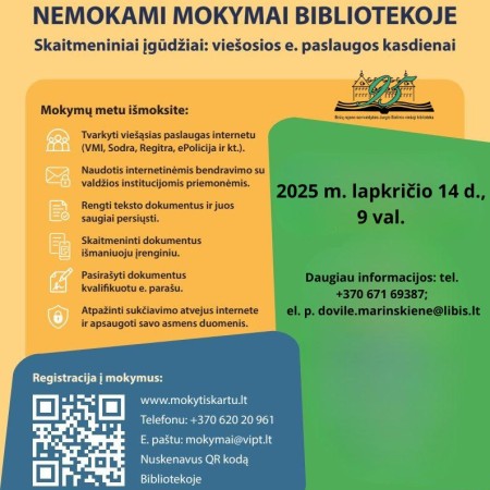 Kviečiame į skaitmeninio raštingumo mokymus bibliotekoje! Lapkričio 14 d. 9 val. II a. skaitykloje.