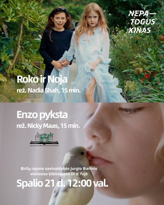 Nepatogus kinas.„ROKO IR NOJA“ (ang. Rocó and Noï) (rež. Nadia Shah) ir „ENZO PYKSTA“ (ang. Angry Enzo) (rež. Nicky Maas)