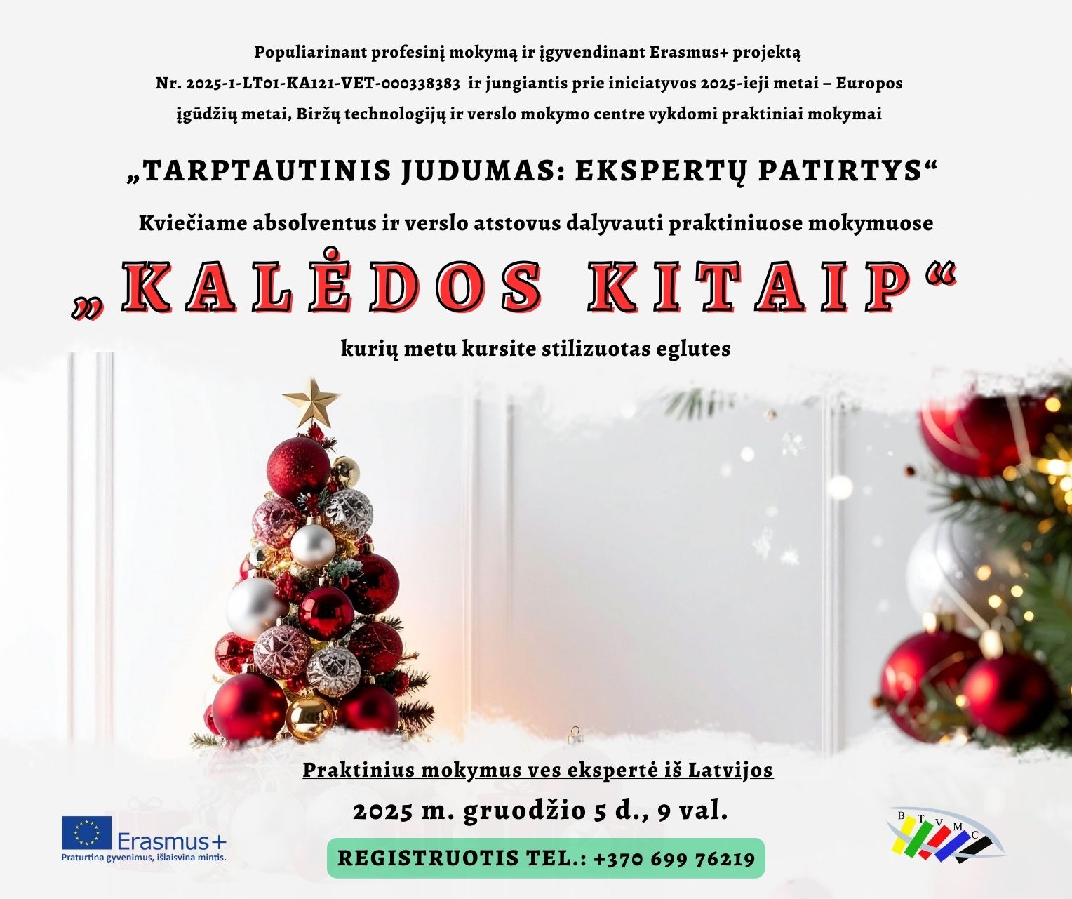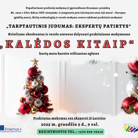 Kviečiame absolventus ir verslo atstovus į praktinius mokymus „Kalėdos kitaip“ – kursime stilingas, modernias eglutes kartu su eksperte iš Latvijos!