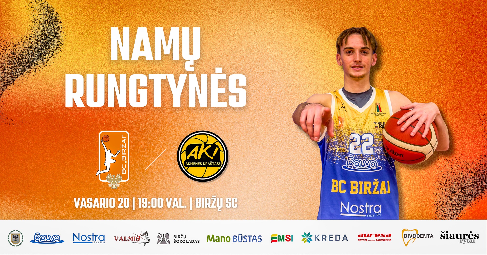 Vasario 20 d. 19:00 val. Biržų sporto mokykloje BC „Biržai“ komanda priims svečius iš Akmenės. Kviečiame palaikyti biržiečius su visa šeima ir atvykti į rungtynes! Įėjimas NEMOKAMAS, o Jūsų palaikymas neįkainojamas!