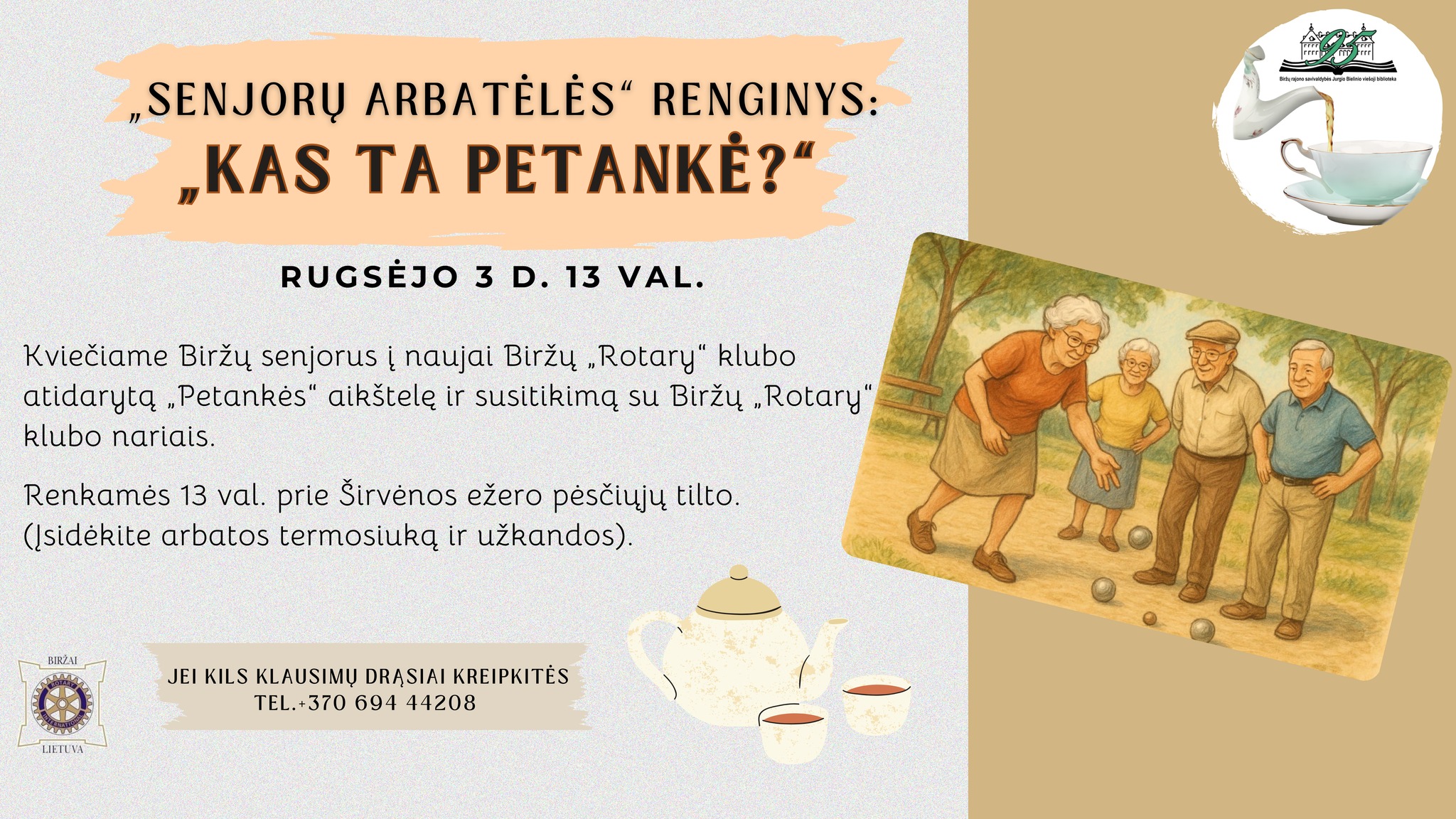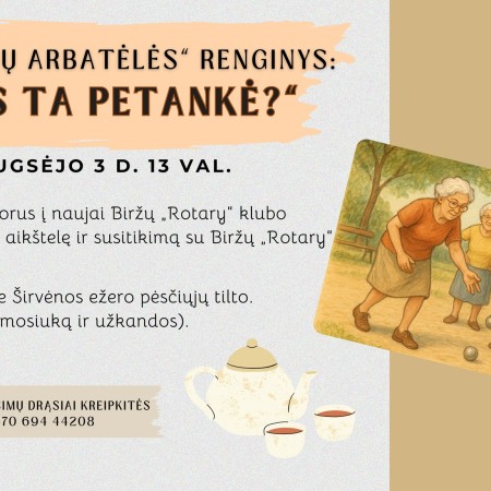 Rugsėjo 3 d. 13 val. „Senjorų arbatėlės“ renginys: ,,Kas ta petankė?“.