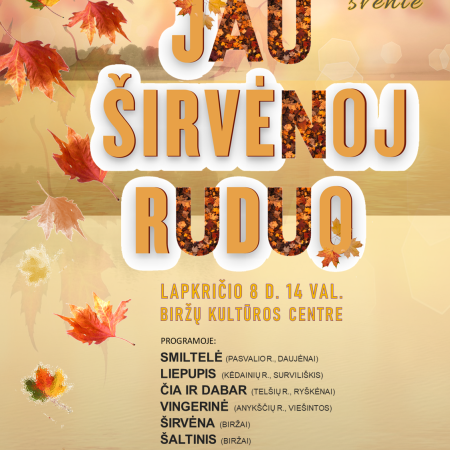 Kai rudens vėjai ima šokdinti medžių lapus, o lietaus lašai tyliai barbenasi į langus, Kultūros centras kviečia praskaidrinti pilką kasdienybę ir pasimėgauti gyvos muzikos šiluma bei nuoširdžia bendryste. Tradiciškai lapkritį, šįmet – 8 d., pakviesime į šeštą kartą organizuojamą kapelų šventę „Jau Širvėnoj ruduo“.