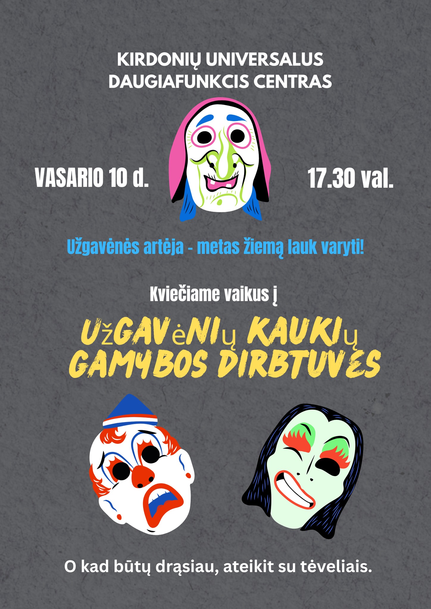 Užgavėnės artėja – metas žiemą lauk varyti! Kviečiame vaikus į Užgavėnių kaukių gamybos dirbtuves.