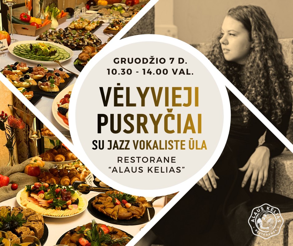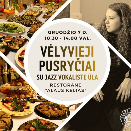 Pirmieji žiemiški vėlyvieji pusryčiai restorane "Alaus kelias" jau gruodžio 7 d. Jūsų skaniam malonumui - karštieji pusryčių pasirinkimai, švediško stalo užkandžiai, neribota kava, arbata, sultys. Šventišką nuotaiką savo balsu ir jazz melodijomis kurs vokalistė Ūla Ševekovaitė - ALUL